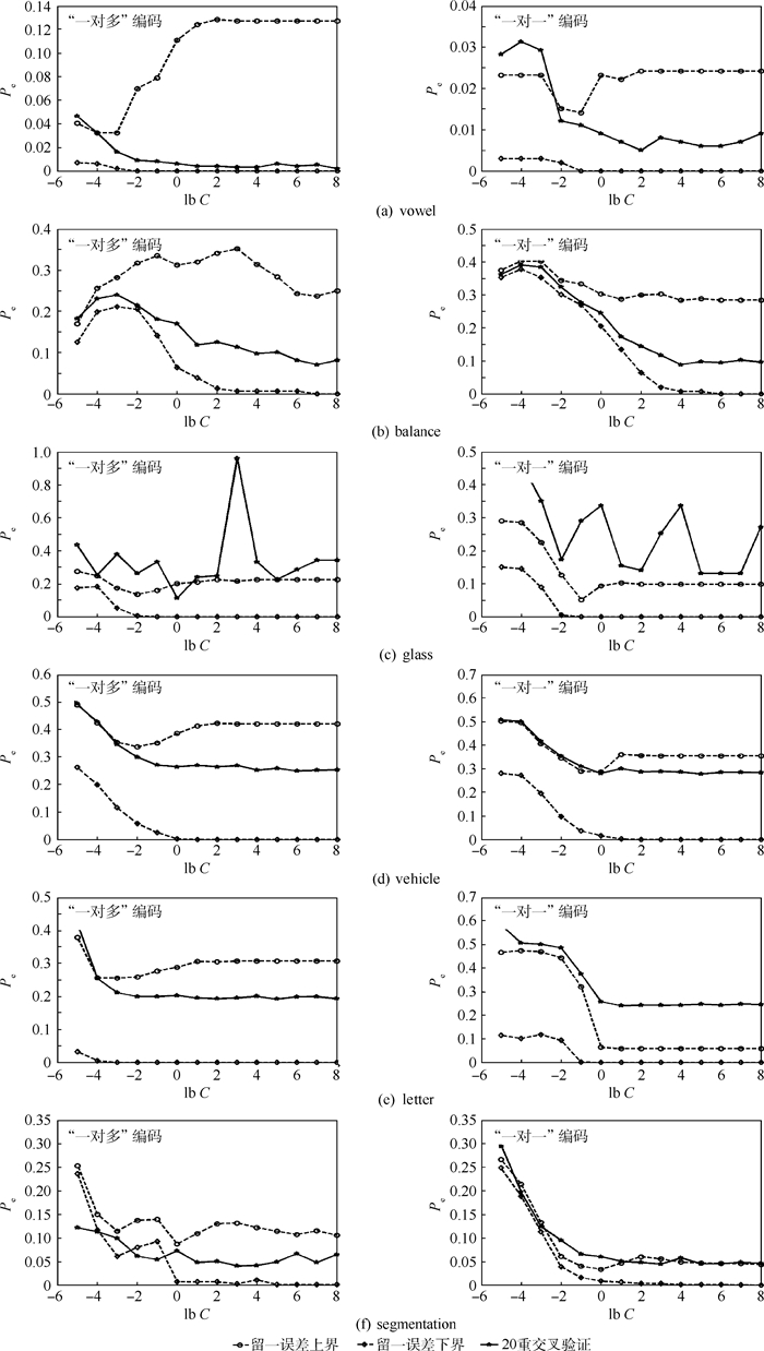 4 结论1) 本文给出的ECOC留一误差的上界可以有效地指导基分类器参数的选择,其中,对核参数的优化重要性更大。