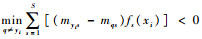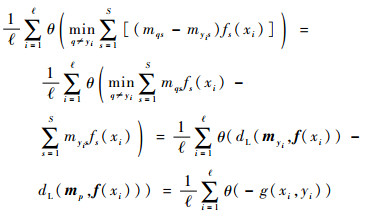 根据ECOC的解码规则,当g(x, y) < 0时,样本x被错分;而当g(x, y)≥0时,样本x被正确分类。由此可见,根据多分类间隔g(x, y)的取值,可以对样本x是否被ECOC错误分类进行判断。进而对于训练集中的所有样本,ECOC的经验误差可以写为