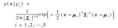 式中:x为二维特征向量;μi为平均值向量;Σi为协方差矩阵;各参数的设置见表 1。
