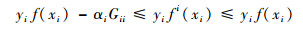 引理1[15] 假设f为一个在整个训练集上训练得到的SVM,fi为剔除掉样本xi后在新的训练集上训练得到的SVM。则有式(9)成立: