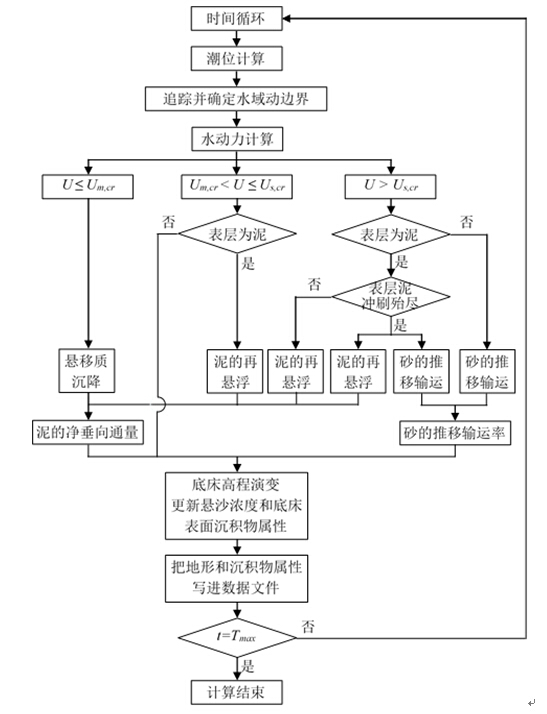 (3) 在泥的再悬浮过程中,判断表层泥是否完全 被冲刷;如果未被完全冲刷,表层仍为泥;如果被完全冲刷,则表层为砂;