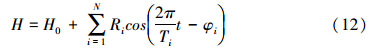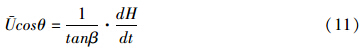 式中H是水位(m);θ是流向与滩面坡向的夹角;β是滩面坡度角。因此,可根据水位变化率、滩面坡度和流向来计算垂线平均流速。对于整个潮滩而言,正常天气下水位变化可根据实测潮汐数据的调和常数反演得到: