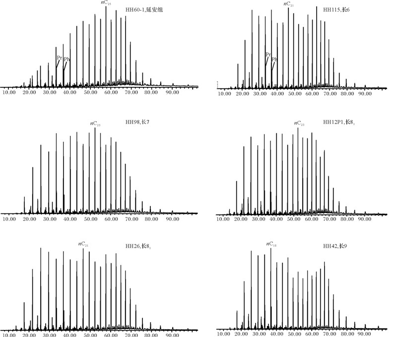 | HH60-1 | 延安组 | 1 886~1 892 | C13~C36 | nC25 | 0.64 | 0.52 | 1.12 | 1.03 | 1.09 | 0.43 |