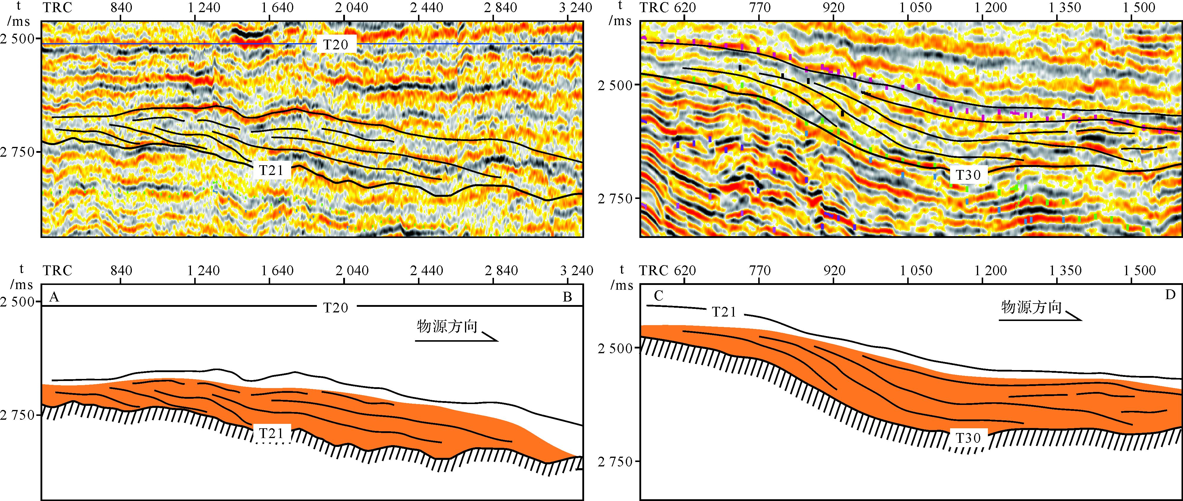西湖凹陷中,渐新统主要发育三个不整合面,由下至上分别为花港组下段底界(T30)、花港组下段顶界(T21)、花港组上段顶界(T20)。