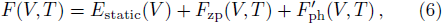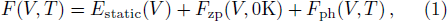 The free energy of Al was first calculated by the quasi-harmonic approximation and then corrected by taking into account the phonon-phonon interactions. The quasi-harmonic approximation (QHA) describes volume-dependent thermal effects based on lattice vibration models known as phonon, neglecting the phonon-phonon interactions. In the framework of the QHA, the Helmholtz free energy of a crystal system is,