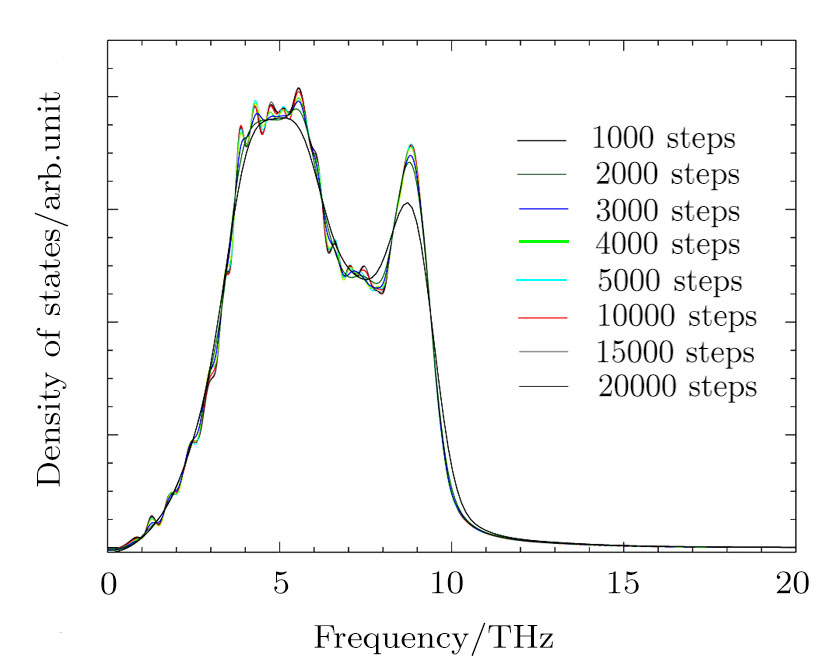 The volumes of supercells used for PDOS calculations had volumes varying from 1.08