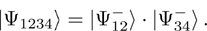 . Due to independent formation of two such entangled pairs, four-qubit system state is represented as a tensor product of individual qubit-pair states (number of qubits marked by symbols):