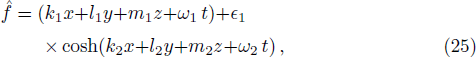 where ϵ1, ki, li, mi and ωi (i = 1,2) are constants to be determined. After direct but tedious computation, we get 31 sets of solutions. In order to guarantee the generality of Eq. (1), we remove the solutions containing hi = 0 (i = 1,. . .,5). We finally get one set of solutions listed below: