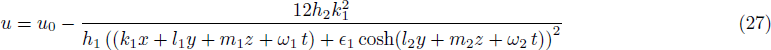 where Θ = ω + h1u0 + h3 + h4k2 ≠ 0, h1h5 ≠ 0, and h2 an arbitrary constant. Substituting Eqs. (45) and (46) into Eq. (36), we get a third order rogue wave solution of Eq. (1) as follows
