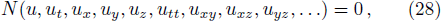 where u = u(x,y,z,t), and N is a polynomial about u(x,y,z,t) and its various partial derivatives.