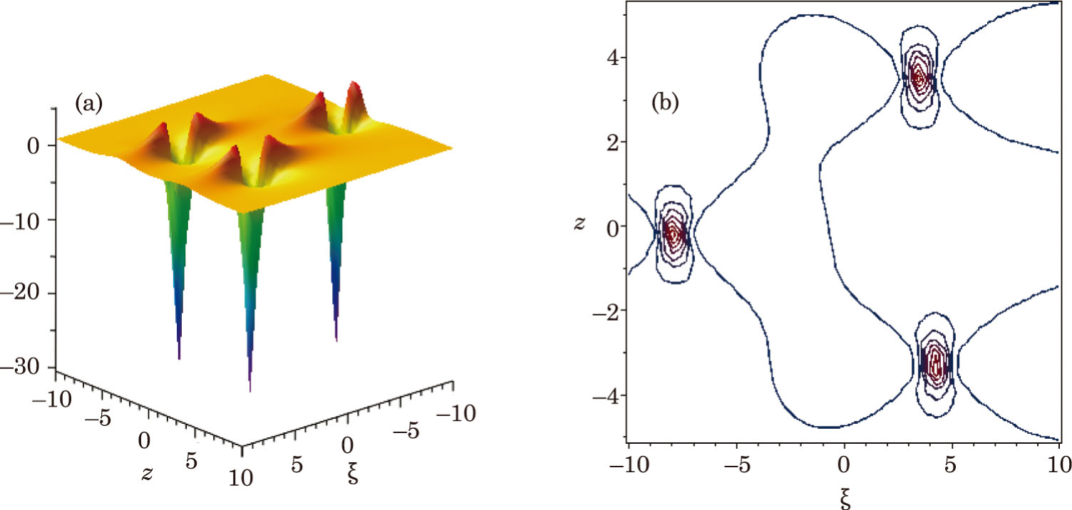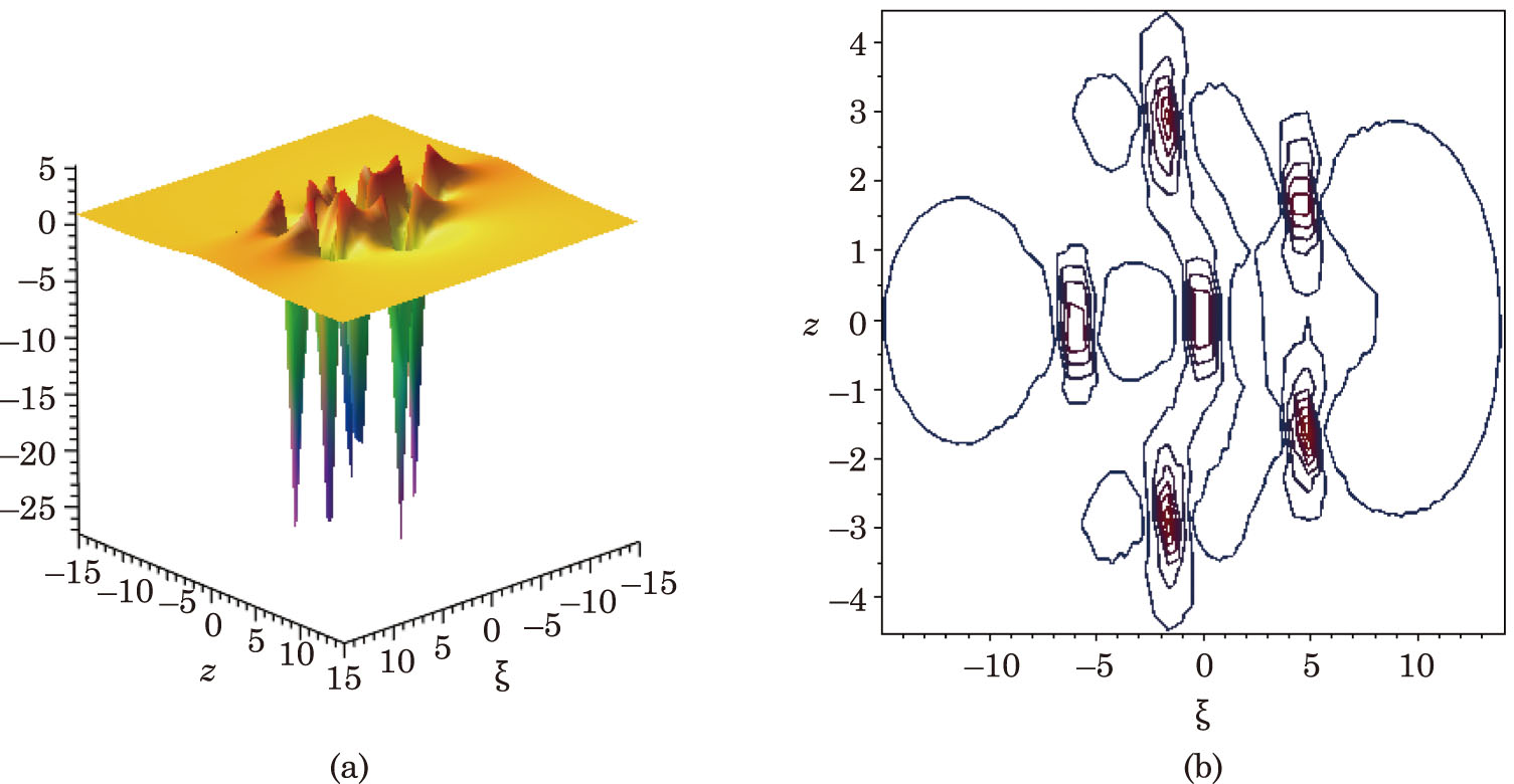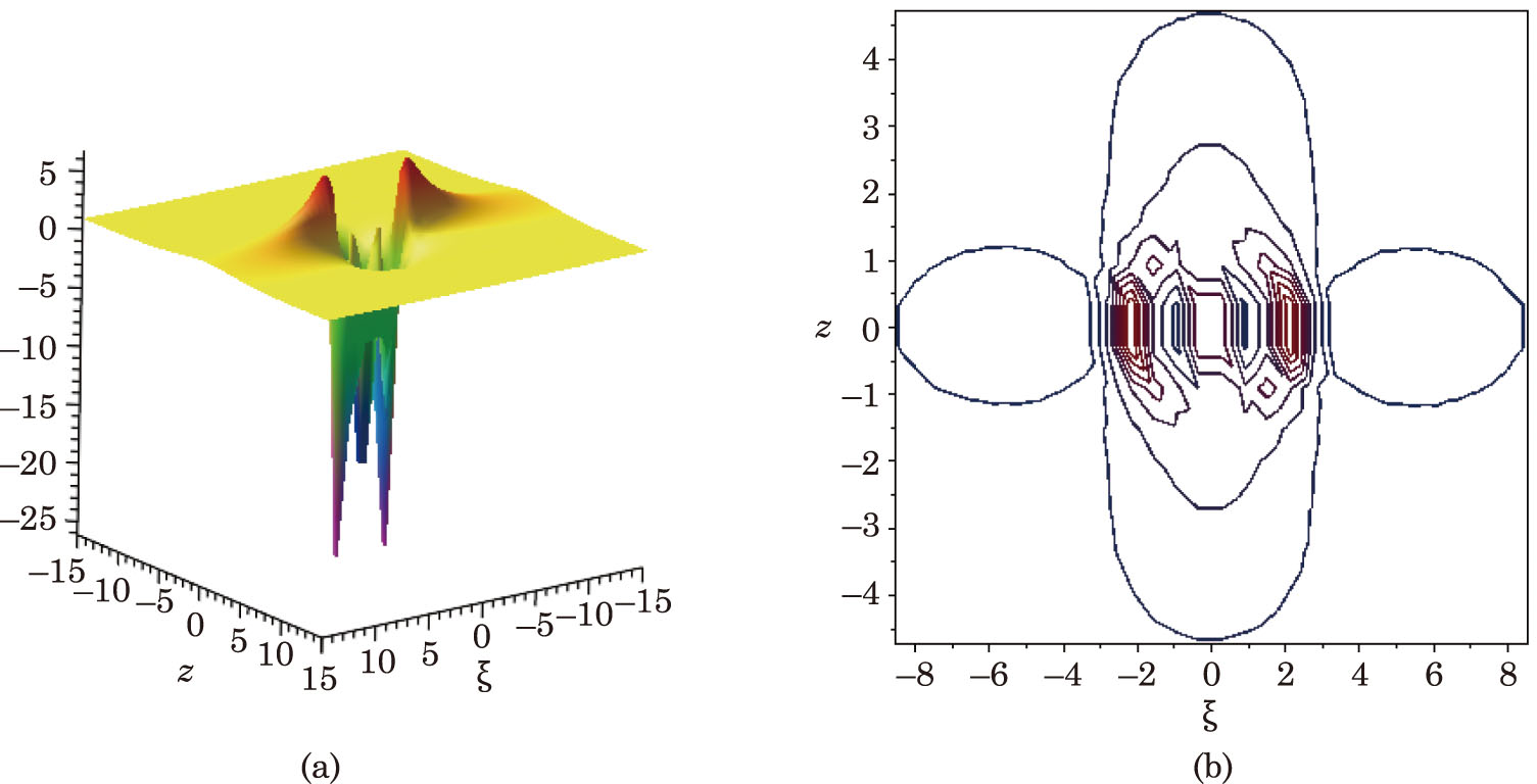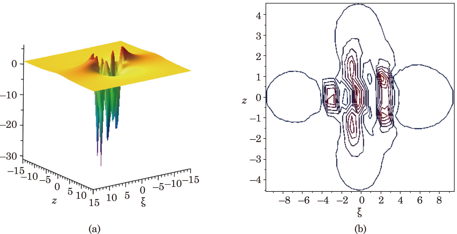 where aj,m,bj, m,cj, m (j,m = 0,1,. . .,n(n + 1)/2) and α,β are real parameters. The coefficients aj, m,bj, m,cj, m can be determined, and α,β are used to control the wave center. When n = 0, we set F0 = 1, F−1 = P0 = Q0 = 0.
