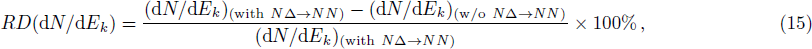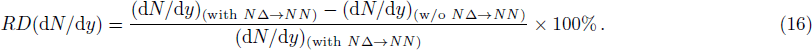 In order to shed light on the impact of the reactions NΔ → NN and πN → Δ on the pion production dynamics, the relative differences of the kinetic energy and rapidity spectra are used, that is,