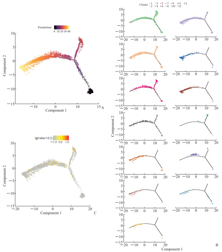 图 3 拟时序分析显示GPSM2+平滑肌细胞簇向S1PR3+细胞簇转化