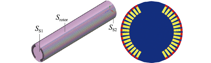 图 1中,Srotor为转子与气隙换热面;在不考虑转子端部的影响下,SS1,SS2面作为绝热面。