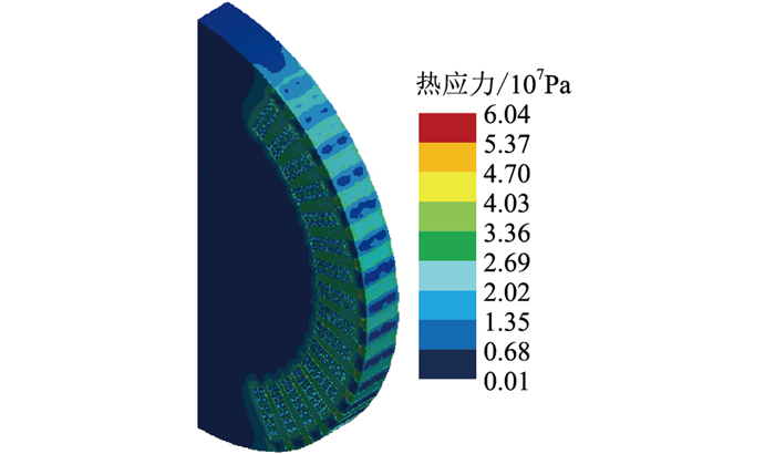 图 2 额定工况转子温度场分布 Fig. 2 Rotor temperature field distribution in rated condition |
