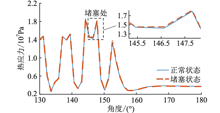 图 11 不同堵塞程度下路径L1热应力分布 Fig. 11 The thermal stress distribution of route L1 under different plugging degrees |