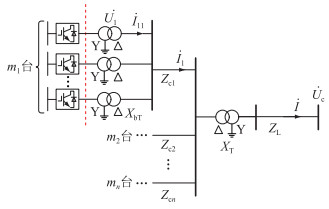 2.2 新能源机端至并网点短路电流映射模型的迭代推导方法通过2.1节处理过程可得新能源机端的工程化模型,但正如引言中所述,实际工程中大部分新能源机组并网须通过箱变、集电线路、主变及送出线路等机-网间的电气元件,具体结构见图 1,所以文献[17]中将新能源机端电压视作并网点电压的研究方法存在严重缺陷。文中为弥补上述缺陷并提高模型的实际应用价值,拟从新能源机端逆推得到并网点的工程化模型。
