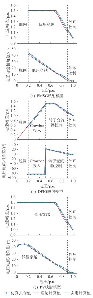 综上,为完善现有新能源短路电流计算的理论缺陷与不足,并提升其计算精度,文中补充性地提出考虑新能源机端电压-短路电流的幅相映射模型,对其进行工程化处理后,进一步提出计及机-网间电气元件影响的迭代计算理论,将新能源机端幅相映射逆推至并网点得到短路电流工程计算模型,最终将此模型应用于现有短路电流的局部迭代计算方法中。