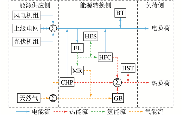 图 2 电-热-氢IES结构 Fig. 2 Structure of electric-thermal-hydrogen IES |