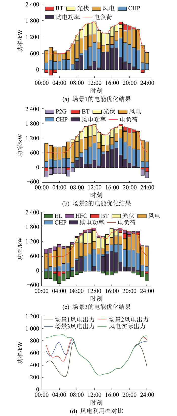 图 4 场景1—场景3的电能优化结果 Fig. 4 Electricity optimization results of scenario 1-scenario 3 |