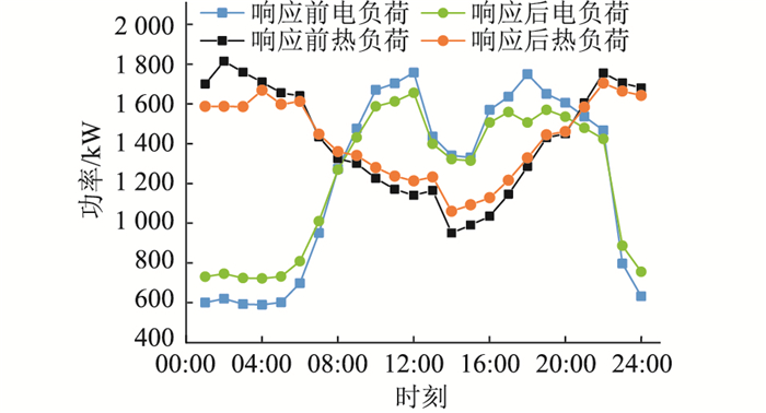 图 6 需求响应前后电、热负荷对比结果 Fig. 6 Power and heat load comparison results before and after demand response |