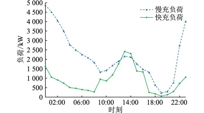 图 7 快充和慢充的预测负荷 Fig. 7 Predicted loads for fast and slow charging |