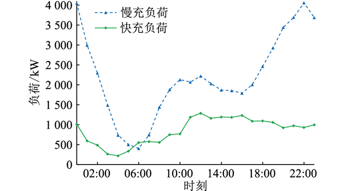 图 11 引导后EV快充和慢充的负荷分布 Fig. 11 Load distribution of EV fast and slow charging after guidance |