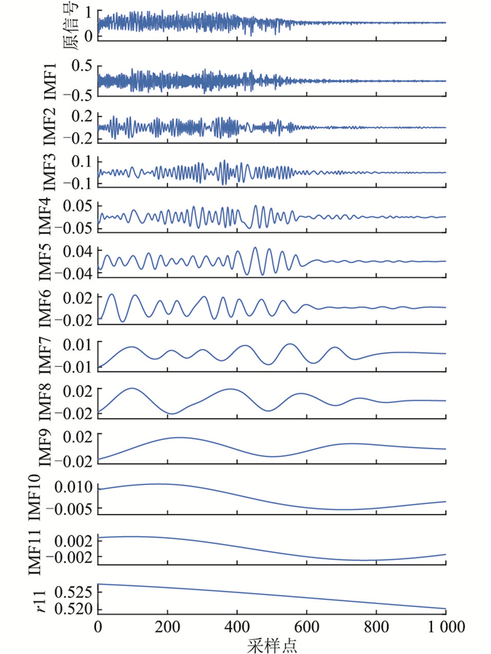 | $ \begin{equation*} x(t)=x_{\mathrm{imf}, 1}+x_{\mathrm{imf}, 2}+\cdots+x_{\mathrm{imf}, l}+r_{l}(t) \end{equation*} $ | (4) |