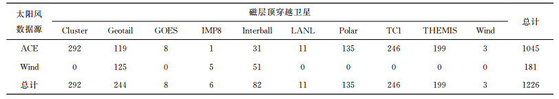 表 1 磁层顶穿越事例分布 Table 1 Distribution of the magnetopause crossings |
