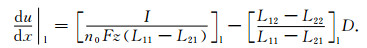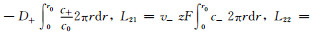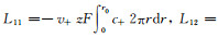 由于基本单元的长度很小,毛管内浓度的变化较小,认为L11、L12为常数,所以
