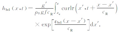 hbc为一阶斜压Rossby波传播的海表面高度异常,x为纬向坐标,cR为一阶Rossby波的相速度,g′为约化重力加速度,ε为牛顿耗散系数.自大洋东岸xe沿着Rossby波特征线方向积分(5)式,方程的解由大洋内部大尺度风应力的强迫和北美西海岸激发的Rossby波两部分组成.下面分别进行讨论.