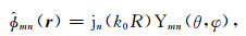 对于占有一定空间的散射体,采用球坐标系r=(R,φ,θ)较为方便,此时入射场(1)式的正则基函数为