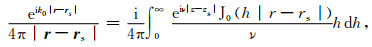 在自由空间中,由源点rs传播到场点r的球面波可以表示为柱面波叠加的形式(省略时间项e-iωt)[23]: