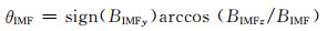 顺便指出, 当BIMFy反向(或θIMF反号)时, 由式(2)可知, 反向前的合成磁场总强度B1和反向后的合成磁场总强度B2满足如下对称关系