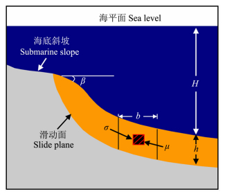 图 2 应用无限斜坡稳定性分析法海底滑坡示意图 Fig. 2 Sketch of submarine landslide analyzed by infinite slope method |