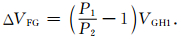 式(2)中,ΔVFG为游离气的体积变化,VFG2为水合物分解导致压力上升后的游离气体积,VGH1为分解前的游离气体积.VFG2与VGH1之间符合波义耳定律,由此可得到