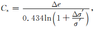 式(7)中,Cc为压缩因子,PI为沉积物塑性系数,Gs为沉积物比重.根据Wroth等[8]的研究方案计算了研究区内的Cs/Cc值:Cs/Cc=0.17(PI=0.15);Cs/Cc=0.34(PI=1.0),从而得到: