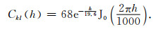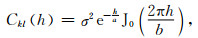 式中,Ckl(h)表示干涉像对中第k和第l个点的噪声变差;h为两点的距离(km,h>0);σ2为标准方差;a和b为调整理论变差与统计变差间相似度的参数;J0为零阶贝塞尔函数.