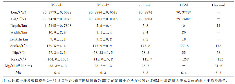 表 3 基于InSAR反演获取的2008年当雄地震震源参数 Table 3 InSAR-derived source parameters for the 2008 Damxung Earthquake |