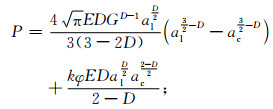 其中,E为两个接触介质的组合弹性模量,al为两者的最大接触点的面积,ac为两者的临界接触面积,D为粗糙表面的分形维数,而且