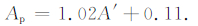 因此在得到拟合的A′(最初的预报值)之后,可以根据公式(3)对预报值进行修正,得到修正后的预报值Ap,图 3b所示为Ap与观测值A之间的关系,可以看出,预报值Ap与观测值A之间的相关性显著提高,二者之间的关系为