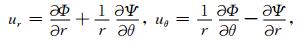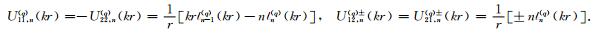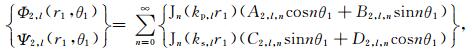 式(9)和式(10)给出的散射波的势函数在极坐标系r2-θ2和r1-θ1下可分别表示为