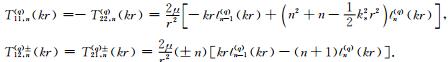 自由场波和散射波势函数的Fourier-Bessel级数表达式给定之后,相应的位移与应力表达式可根据如下公式推导得出