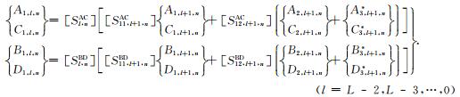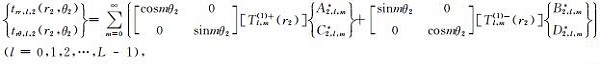 其次,依次针对第l个圆弧边界(l=1,2,…,L-1),将(26)式与(27)式分别代入连续条件(7)式中可得如下关系