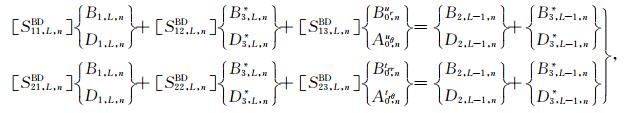 分别合并(37)式与(38)式可得到第l层沉积介质中散射波待定系数之间的关系