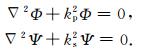 稳态情况下,P波的势函数Φ和SV波的势函数Ψ分别满足如下方程