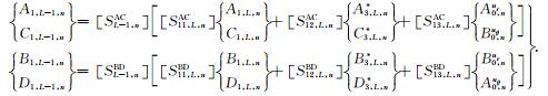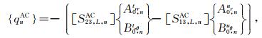 其次,依次针对第l层沉积介质,l=L-1,L-2,…,0,首先合并(43)、(44)和(41)式(针对l=L-1)或合并(37)、(38)和(41)式(针对l=L-2,L-3,…,0),可以确定各层介质中柱面行波的待定系数A1,L,n、C1,l,n、B1,l,n和D1,l,n: