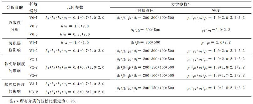 表 1给出了本文的结果分析工作所涉及到的所有谷地的几何参数和力学参数.谷地的几何形状与力学性质均以参数比值的方式予以确定.