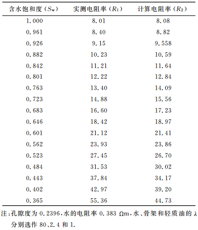 表 3 砂岩饱和度和电阻率 Table 3 Sandstone resistivity obtained by:R1 measuring in aboratory, R1 calculating with (33) |