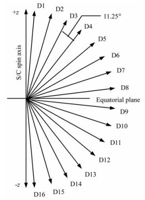 图 1 NUADU仪器16个探测器的指向 Fig. 1 Pointing directions of the 16 detectors of the NUADU instrument |
